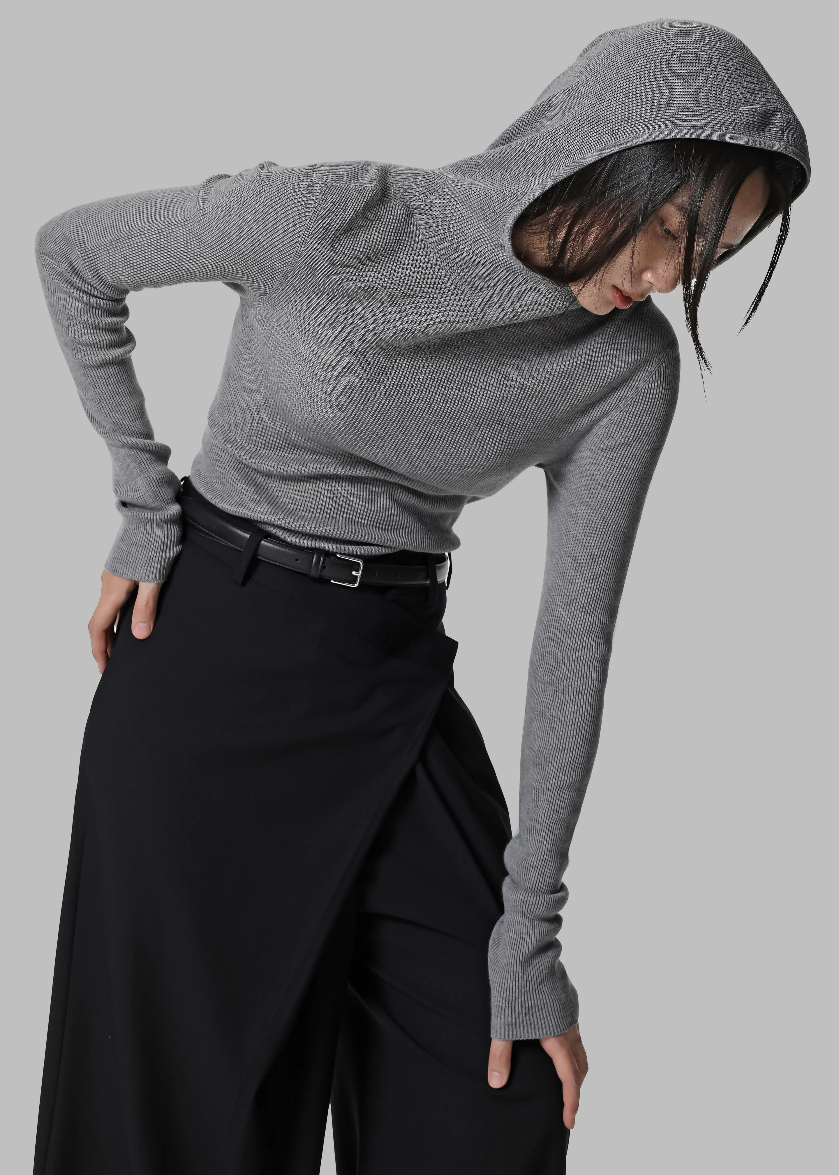 Danae Hooded Knit Top - Grey